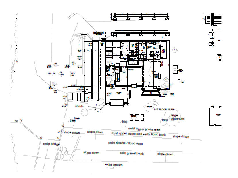 The facade, wrapping porch, huge picture window allowing a vista of the stream, and interior spaces are layered pieces with an undulating ceiling inspired by the water and the work of Palladio, Scarpa, Aalto and the work of the late architect genius Louis Kahn. Additionally, as with all my work, the work draws on the theoretical milestone article written by Sir Colin Rowe and Robert Slutsky on phenomenal transparency.