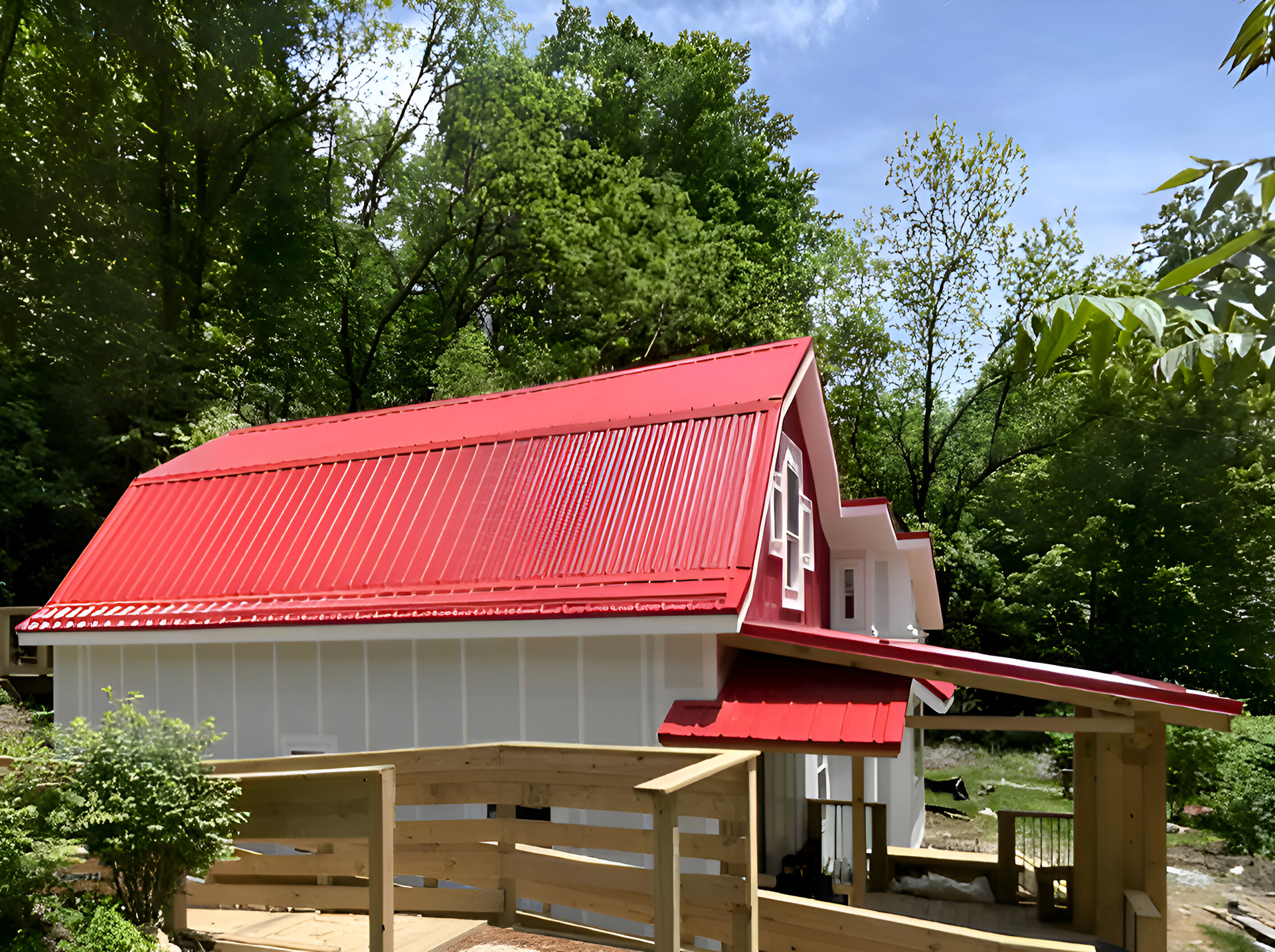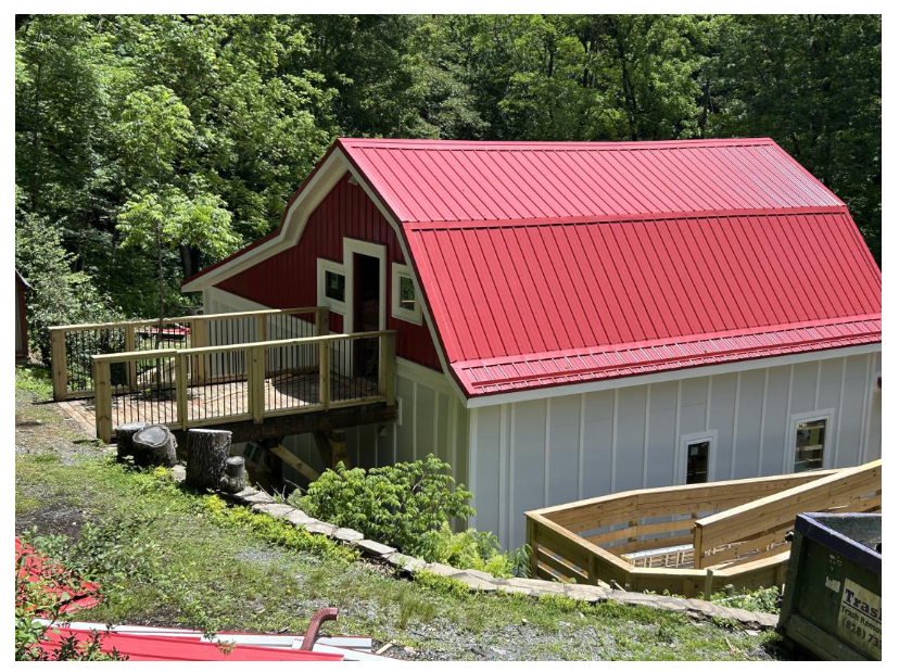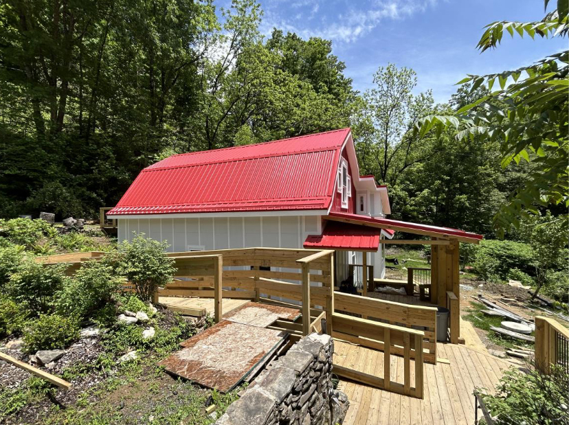 The cottage was a barn originally, built date unknown but neighbors who have lived here for 80 years say, "I remember the barn when I was kid growing up here". There was a bad attempt at a renovation into an apartment and no work had been done in 40 years. The design concept is to maintain the historic form of the barn so prevalent in the high country with a shed roof off one side. You can see this archetype everywhere in these mountains. But the concept was to redefine and present a new interpretation of this utilitarian form. Additionally, a new porch and entry facing the stream was added as well as a fully accessible ramp into the cottage. The interior is designed to be fully ADA accessible affording a person with disabilities full access to a mountain structure.