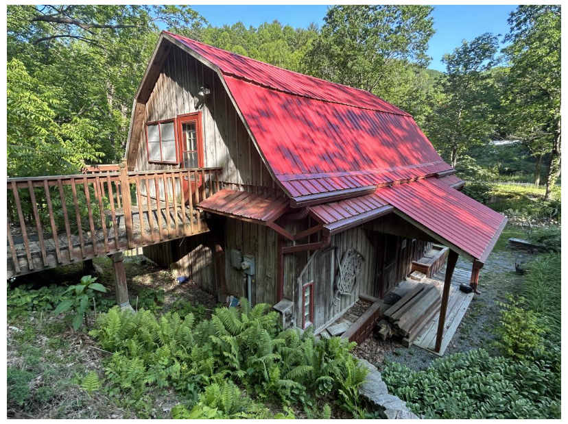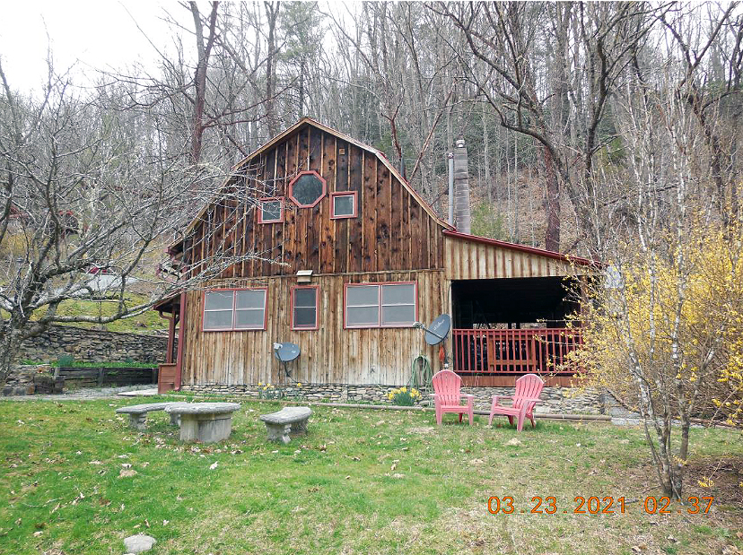 The neighborhood is an eclectic mix of house types built between 1900 and 1970. The house sets on 3.4 acres fronted by a stream and backed by mountains.