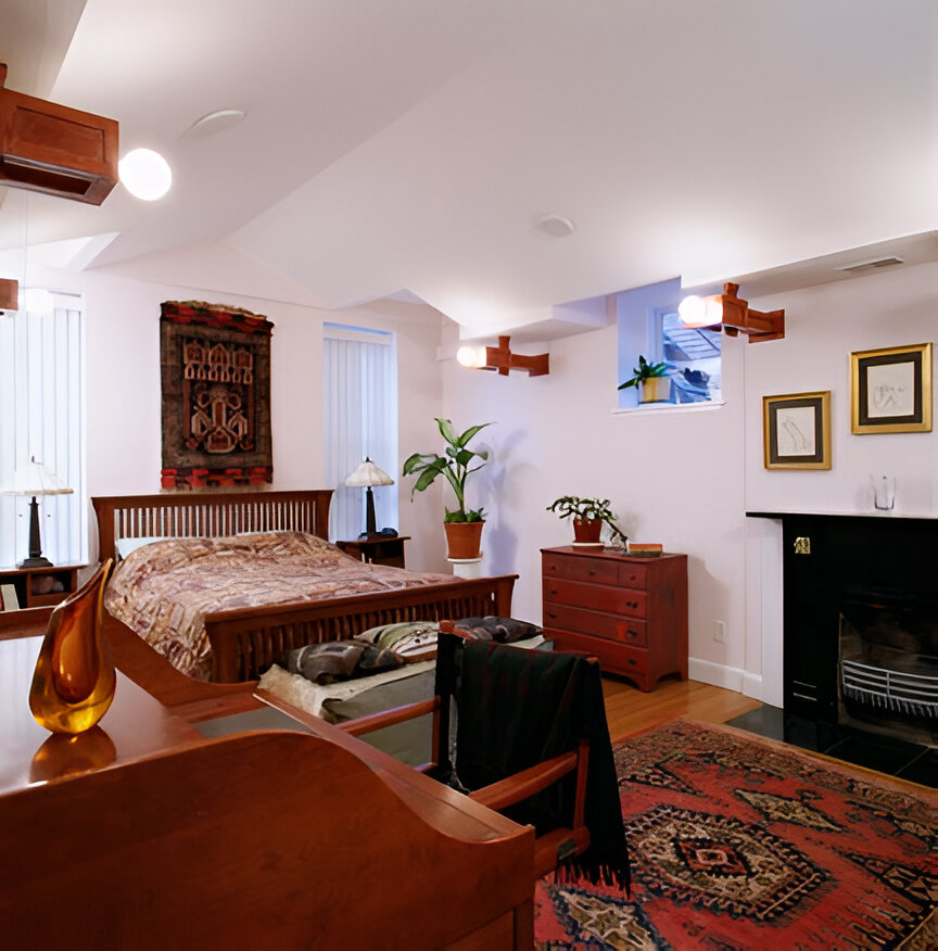In addition, the existing interior design of these houses usually is not amenable to the way persons live today. This house was opened up and designed so that natural light floods the entire space. The interior design and renovation was influenced by many great spaces and by many great architects such as Kahn, Gaudi, Wright, Aalto and Palladio. The design and construction was based on a simple concept- 'Design toward the light'.